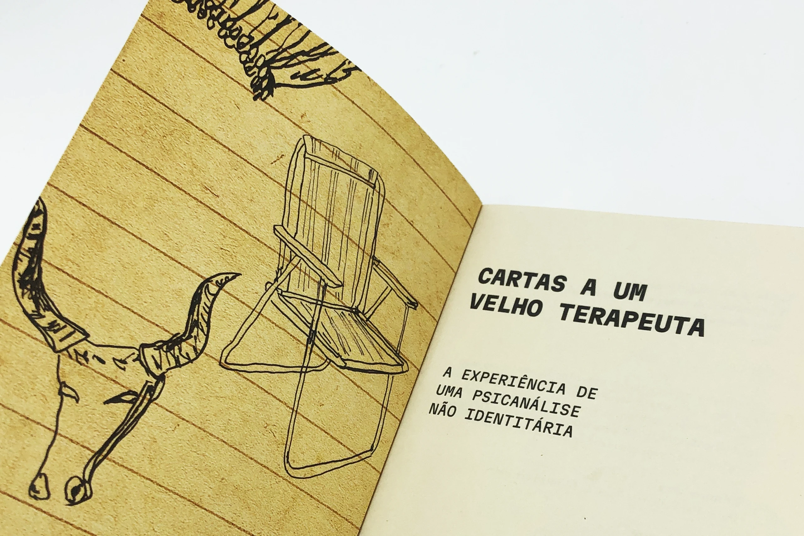 Projeto gráfico e capa do livro Cartas a um velho terapeuta: A experiência de uma psicanálise não identitária, de Thaís Klein e Érico Andrade, publicado pela n-1 edições.